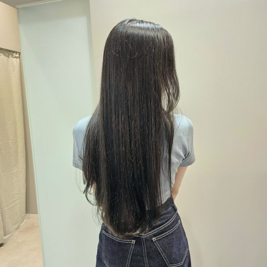 丁寧に丁寧に毛先のぶつ切りを作っています✂️